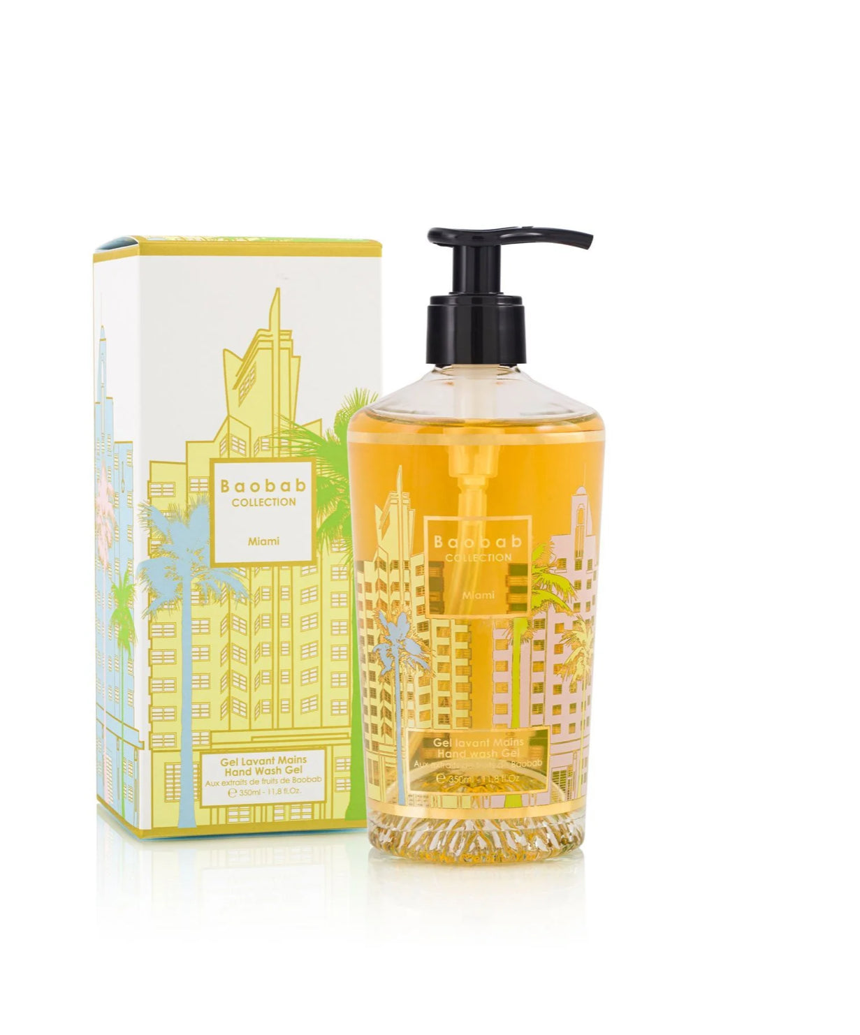 Made in a glass decorated with a gold and pastel silk-screened print inspired by the art deco buildings of South Beach.